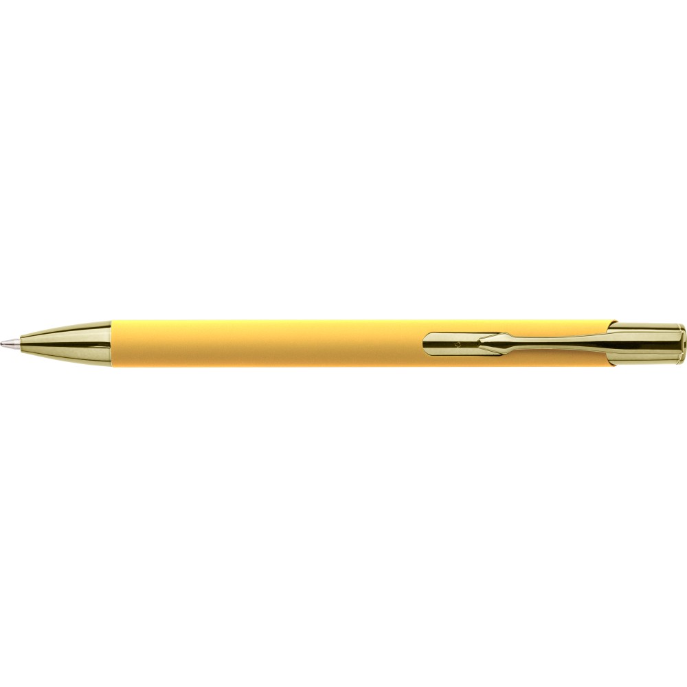 Újrahasznosított alumíniumból készült, gumírozott felületű golyóstoll, a toll színével harmonizáló UV-bevonatú műanyag és fém díszítéssel. Gravírozás után fényes tükörhatás jelenik meg. A tolltesten gravírozott recycled (újrahasznosított) alapanyagra utaló logó található. Megközelítőleg 800 méter íráshosszúságú, kék színű tollbetéttel.