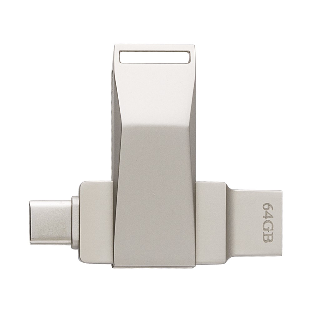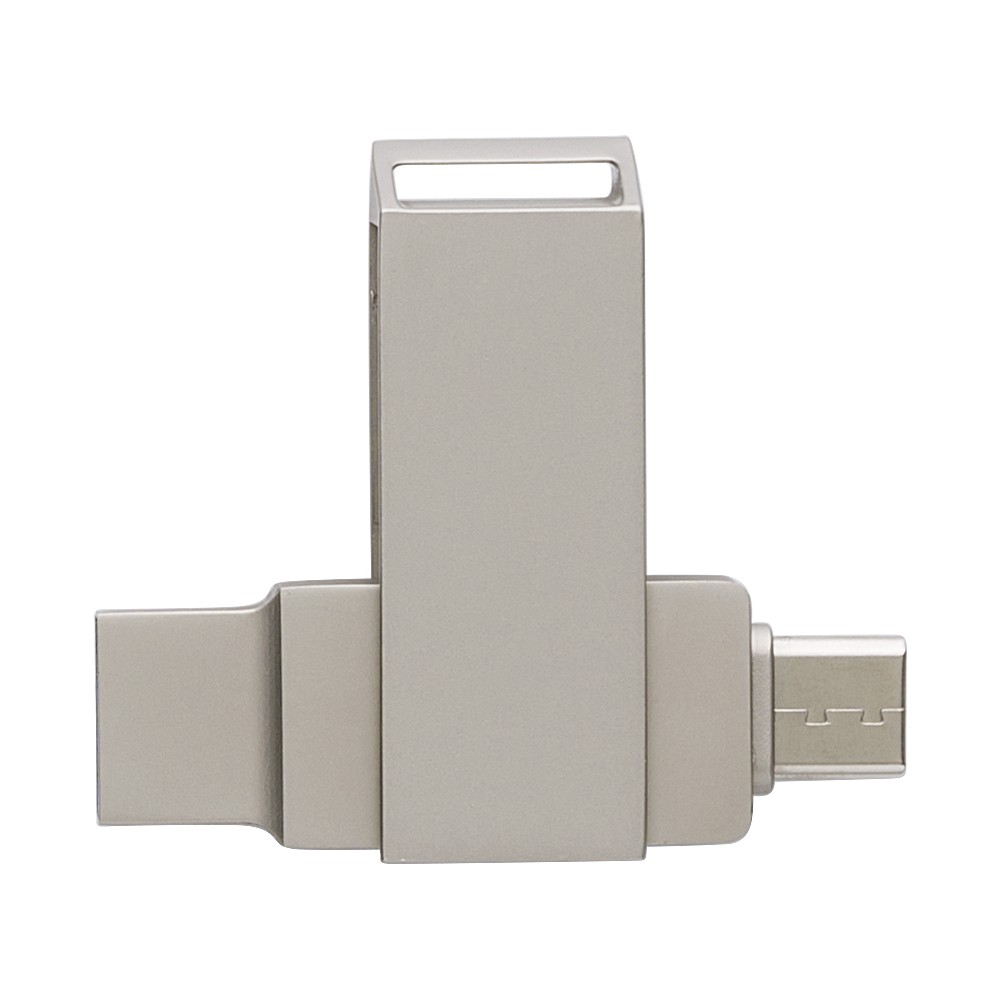 Pendrive 64 GB kapacitás, USB 3.0. USB-A és USB-C csatlakozóval. Csomagolása fém doboz.