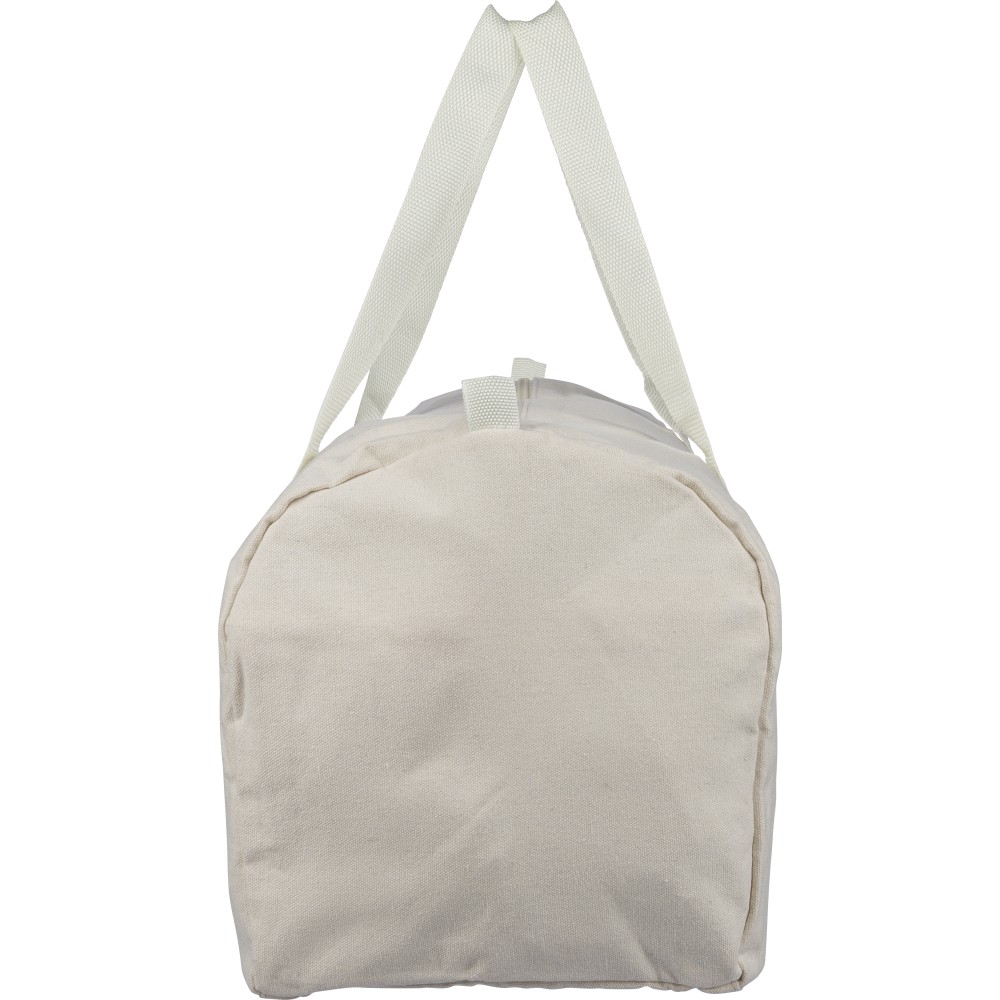 Újrahasznosított pamut-poliészter, 330 g/m2 kevertszövetből készült sporttáska nagy, cipzáras felső rekesszel, 100 cm hosszúságú és 3 cm szélességű hosszú fülekkel, a táska színével megegyező hevederrel. Megközelítőleg 30 literes űrtartalommal rendelkezik. A külső felületen rPET címkével, a belső részben újrahasznosított alapanyagra utaló címkével ellátva.
